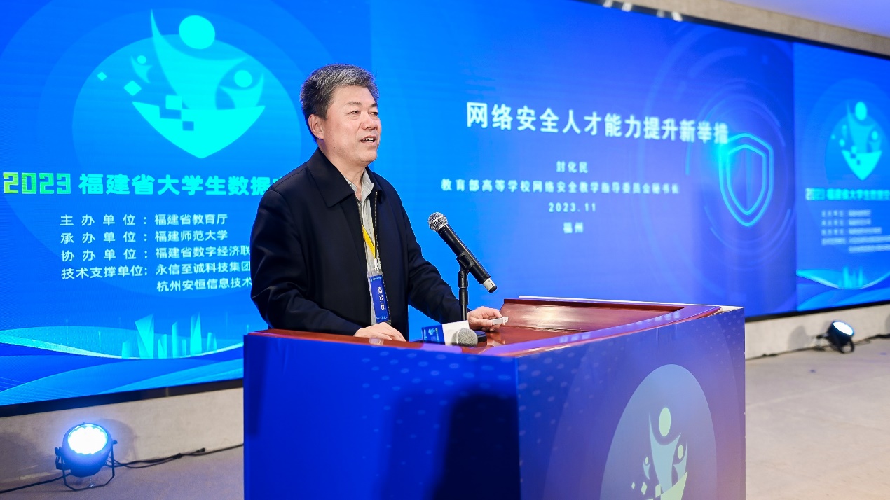 大赛于11月11日在我校旗山校区宏达厅举行,由省教育厅主办、我校承办、省数字经济联盟协办,永信至诚、安恒信息提供技术支撑。教育部高校网络空间安全专业教指委秘书长封化民,省教育厅教育管理信息中心主任张杰,福州市委宣传部副部长、网信办主任杜微,我校副校长郑家建,计算机与网络空间安全学院负责人,网络安全企业代表、指导教师和参赛选手共160余人参加了开幕式。