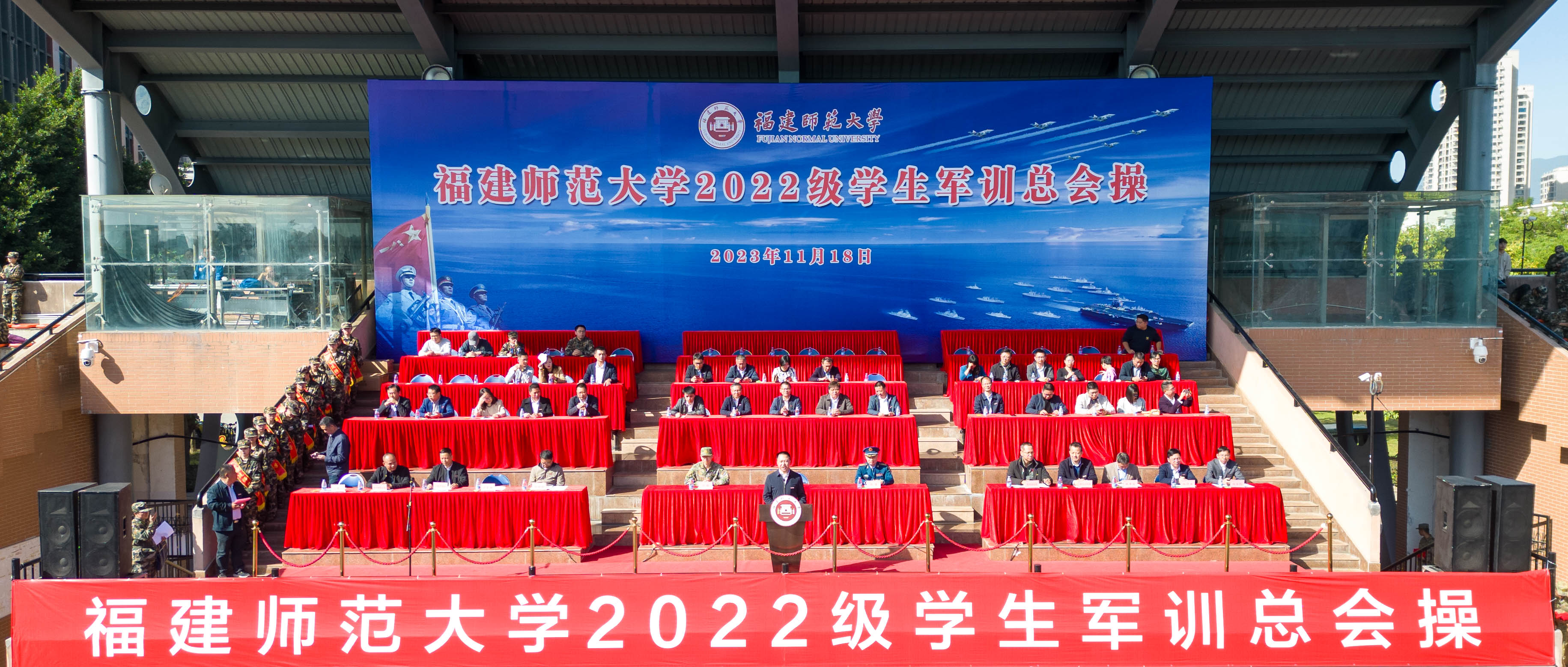 11月18日,我校在旗山校区东区田径场隆重举行2022级学生军训总会操。校党委副书记涂荣,福州市仓山区人武部部长张翼,军训团全体教官,学校军训工作领导小组成员单位、各学院分管学生工作负责人,2022级全体辅导员及学生参加。