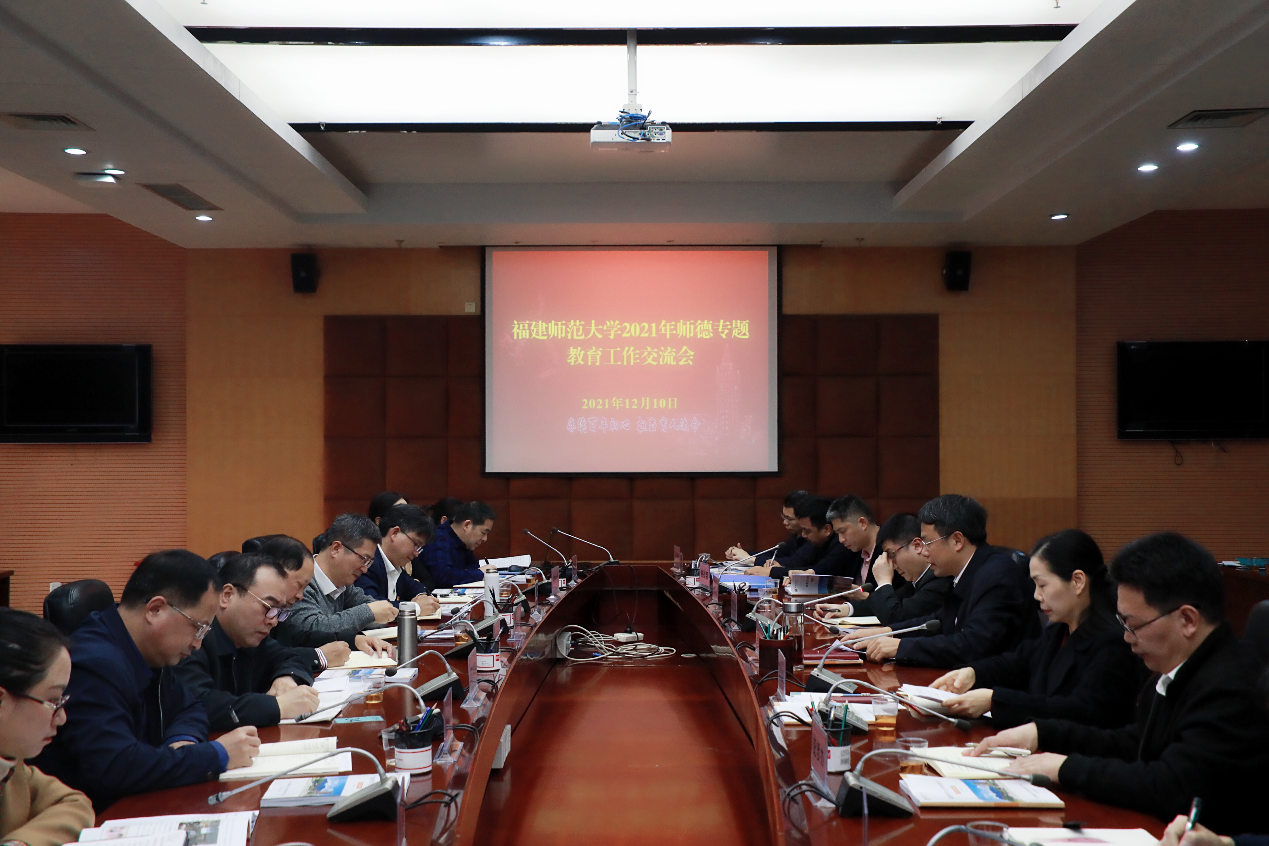 12月10日,我校在旗山校区第十会议室召开师德专题教育工作交流会。校党委书记潘玉腾、副书记陈晓红,师德专题教育领导小组成员,二级单位党委主要负责人参加了会议。