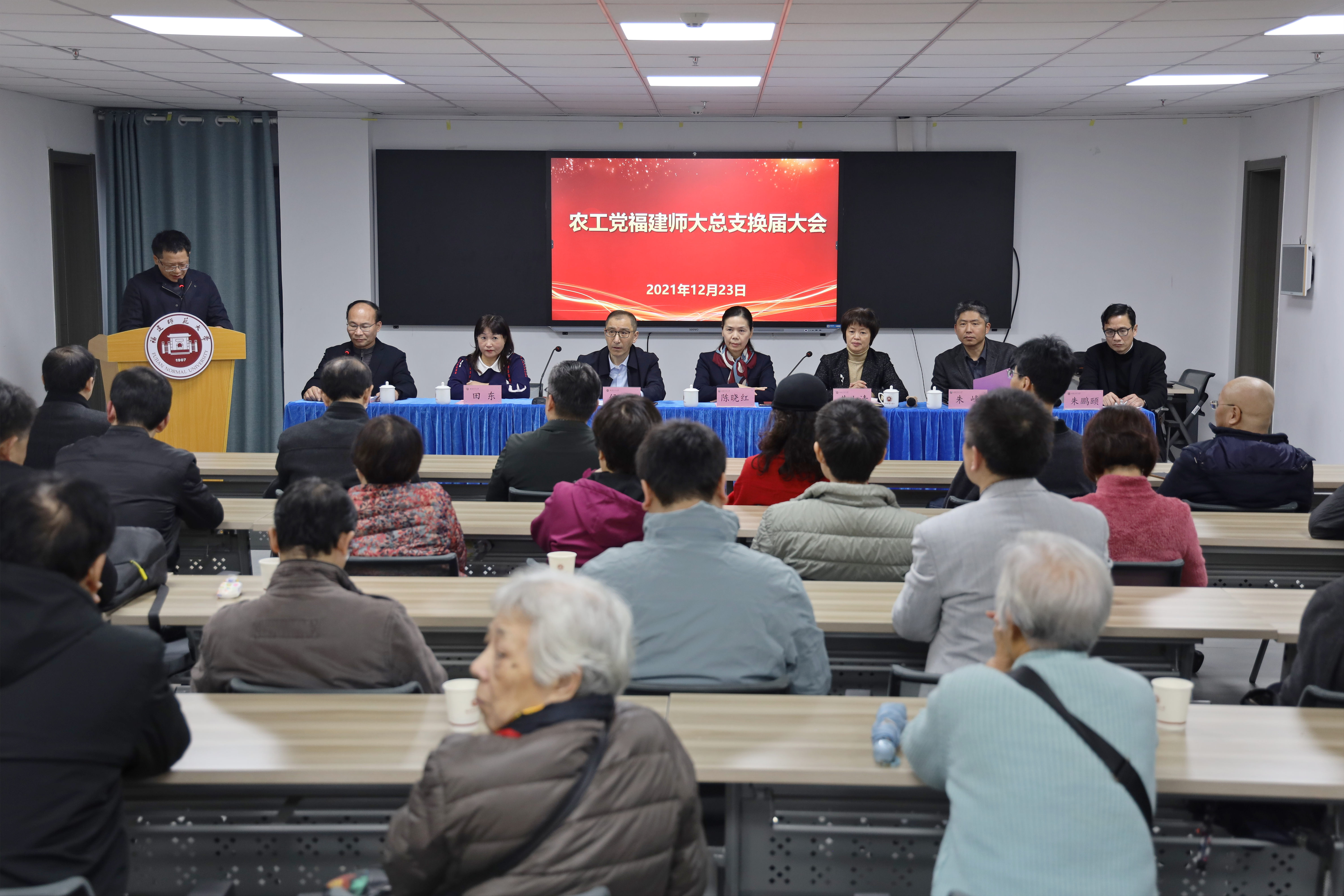 大会于12月23日在仓山校区吕振万楼会议室举行。农工党省委副主委侯建明,我校党委副书记陈晓红,农工党省委办公室、组织部,校党委统战部、校统一战线各基层组织代表、农工党师大总支全体党员参加了大会。
