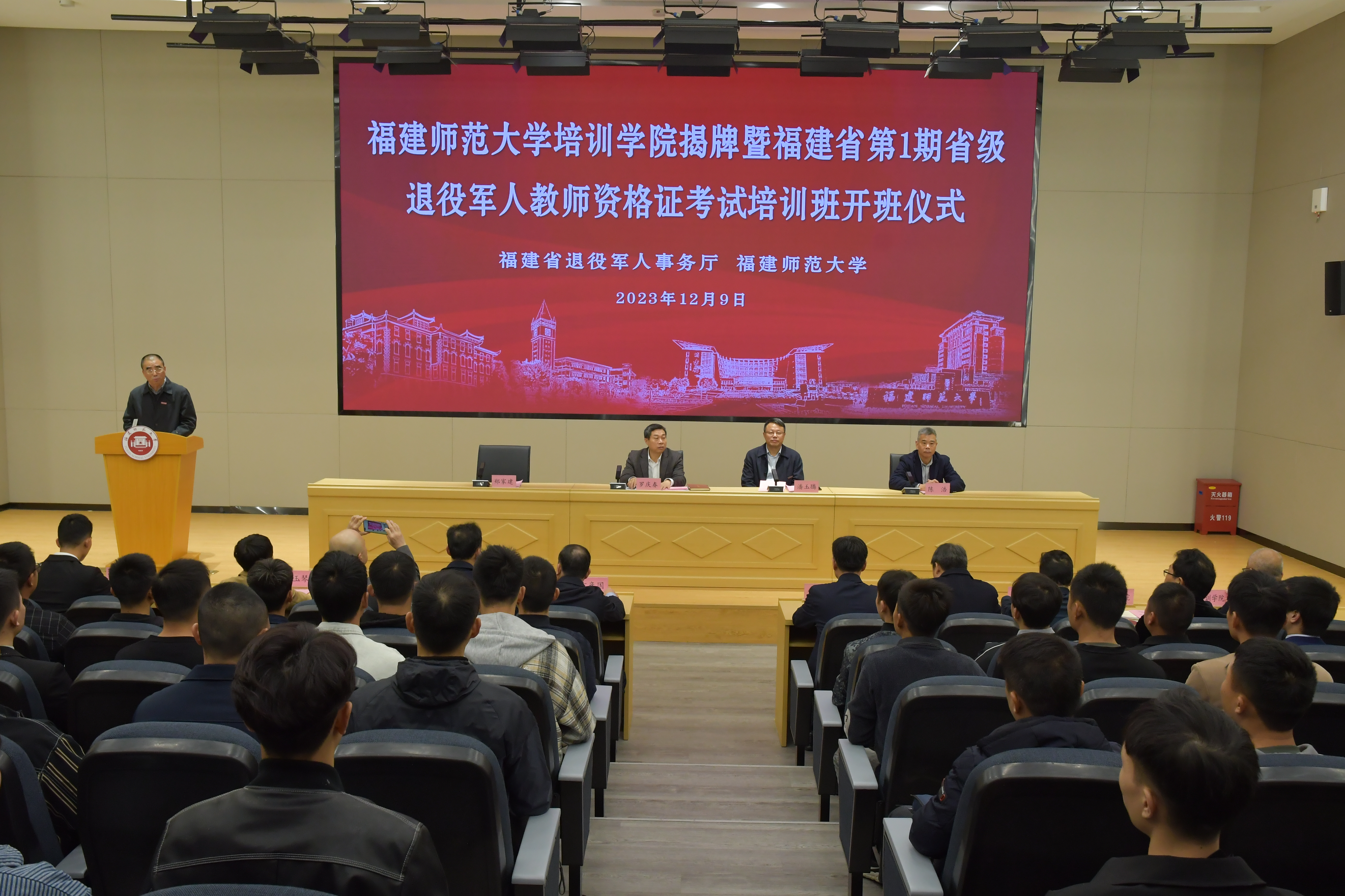 活动于12月9日在仓山校区举行。校党委书记潘玉腾、副校长郑家建,省退役军人事务厅厅长罗庆春、副厅长陈浩出席活动并共同为培训学院揭牌。