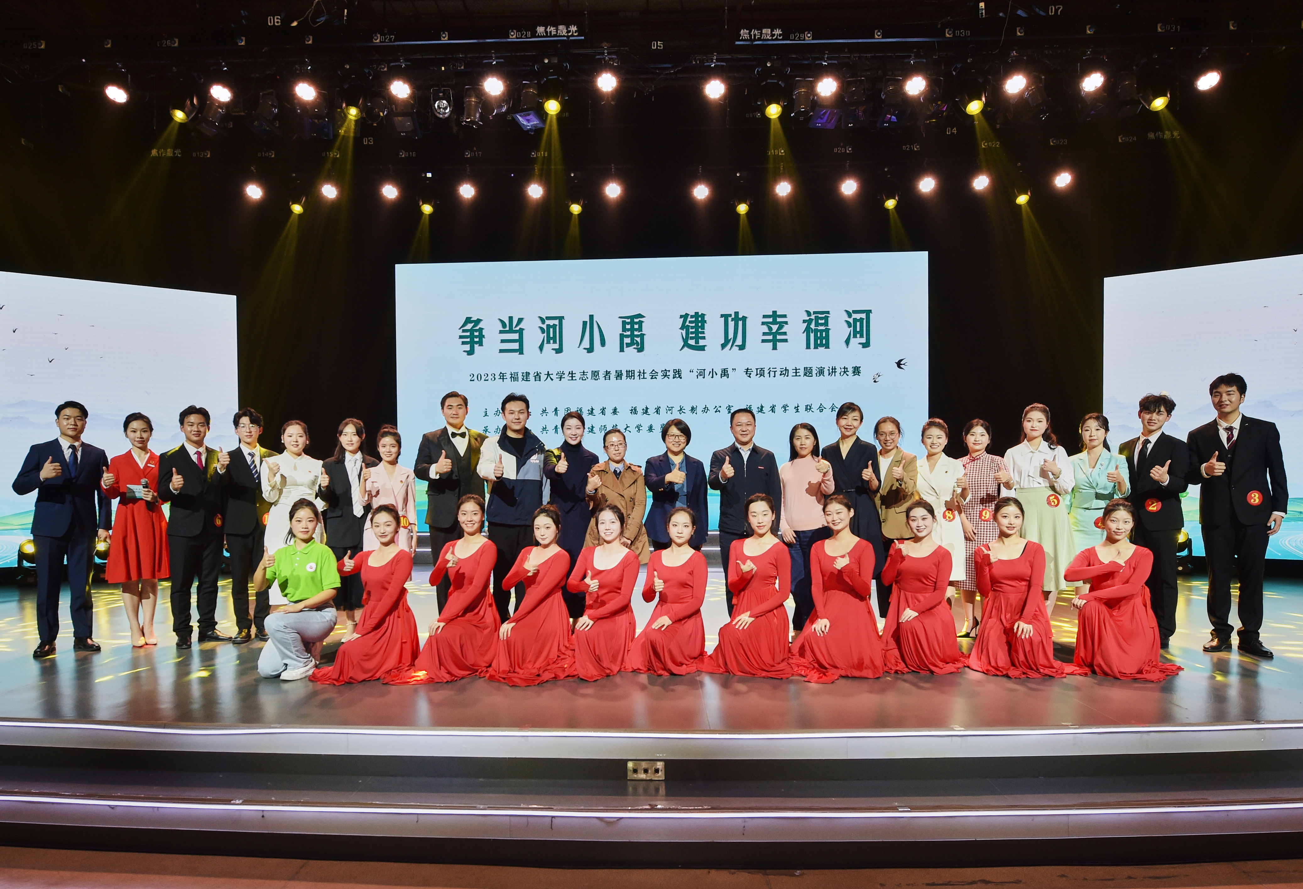 来自全省各高校80余支参赛队伍,历时两个月的初赛比拼,共有12组选手入围总决赛。决赛以“争当河小禹,建功幸福河”为主题,选手们结合实践经历和学习感悟,讲述真实感人的故事,以饱满的热情、生动的语言,充分展现出青年学生在福建生态文明建设中昂扬的精神风貌,传递了青年学生挺膺担当、奋发有为的时代力量。