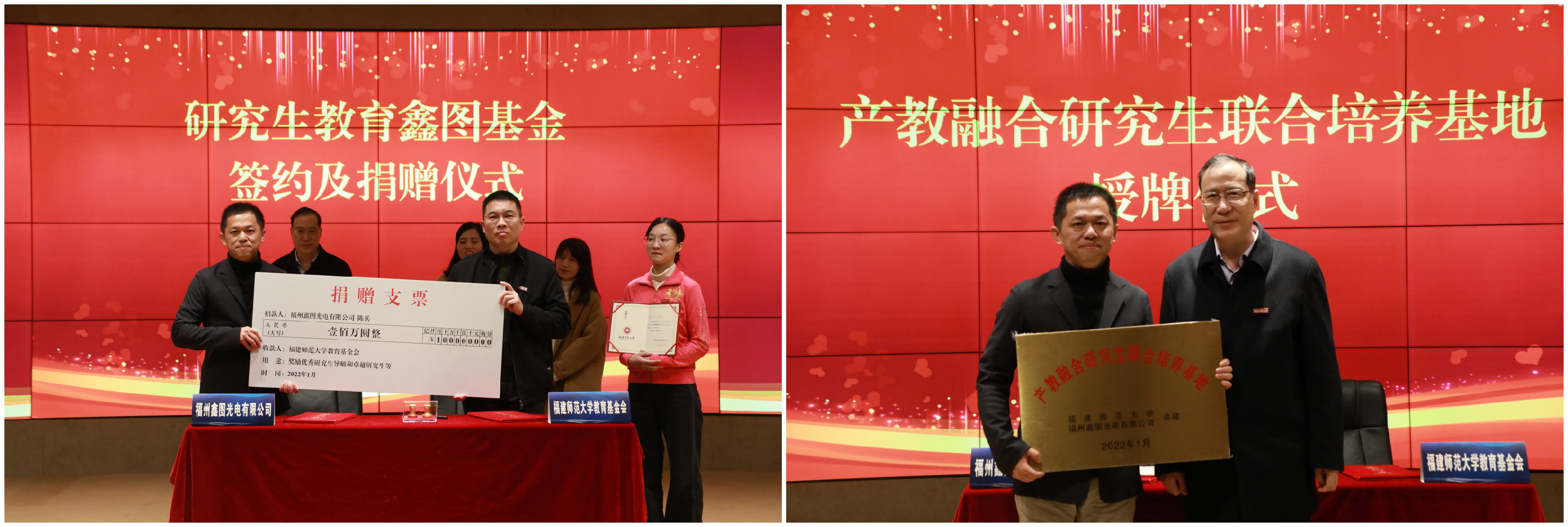 活动于1月5日在我校旗山校区宏达厅举行。福州鑫图光电有限公司总经理陈兵先生一行,我校校长王长平,统战部、学工部、财务处、产教融合发展中心、研究生院等单位负责人,各学院(学部)分管研究生教育工作负责人,受表彰研究生,各学院(学部)研究生代表参加了此次活动。