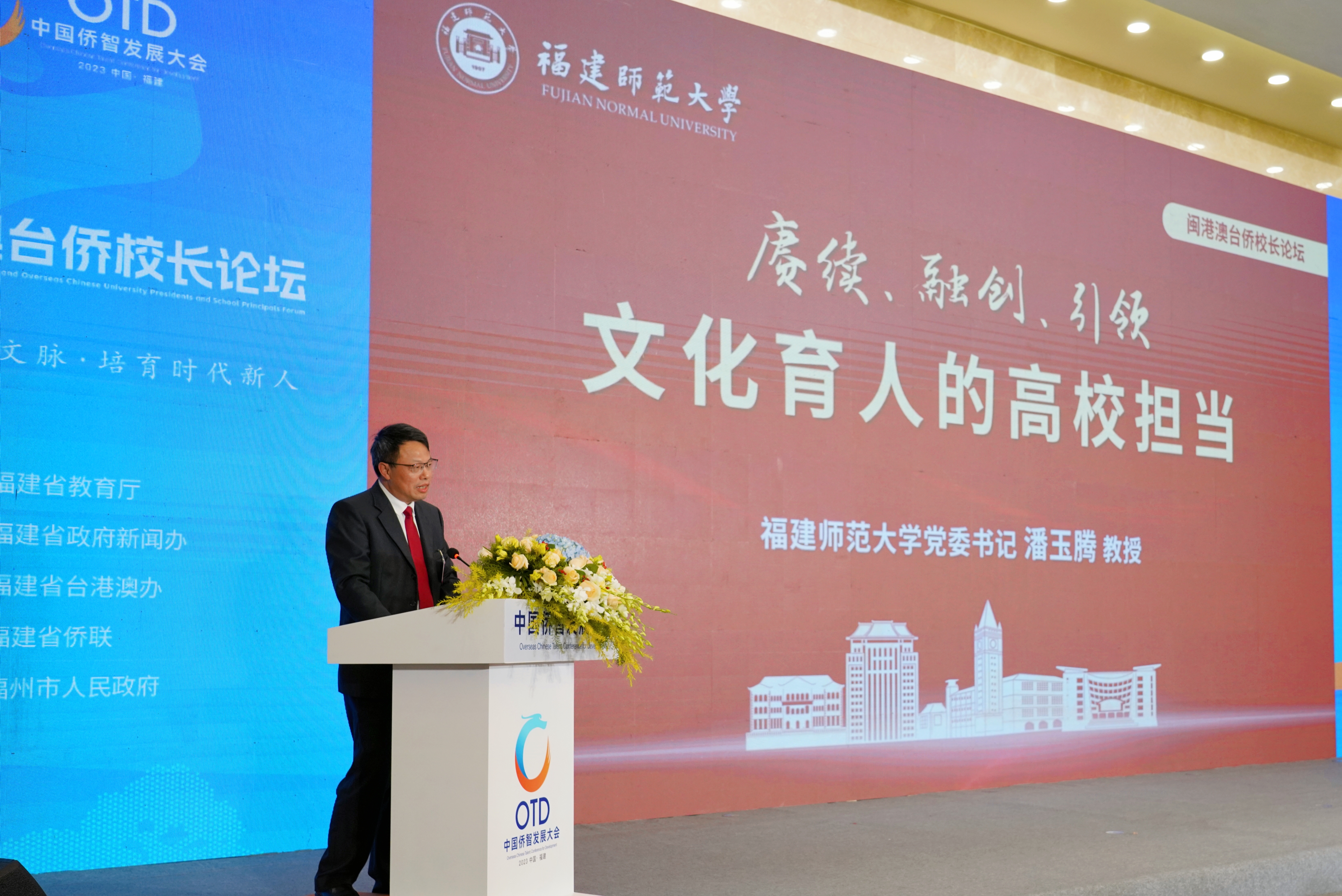 在开幕式致辞中,江尔雄指出,福建始终高度重视中华文化传承发展,深入贯彻落实习近平文化思想和习近平总书记关于教育的重要论述,积极推动与港澳台及海外的教育、文化交流,取得积极成效。希望各方进一步加强交流互鉴,用好福建区位、侨台等优势,大力推介妈祖文化、朱子文化、客家文化等具有福建特色的文化;进一步深化校际交流,加强跨区域姊妹校对接,持续拓展多领域交流合作;进一步做强“留学福建”品牌,推进孔子学院、海丝学院等建设,更好激发人才活力。潘玉腾表示,文化是学校办学的血脉、发展的灵魂。赓续文化基因、厚植文化自信,是立德树人的内在逻辑和价值旨归。在深入学习贯彻习近平文化思想的重要时点,聚焦“赓续中华文脉·培育时代新人”主题,开展深入研讨、分享宝贵经验、融通思想睿智,对于在守正创新中传承赓续中华文脉,增强中华文明的传播力影响力、推动中华文化更好走向世界,必将产生积极而深远的影响。
