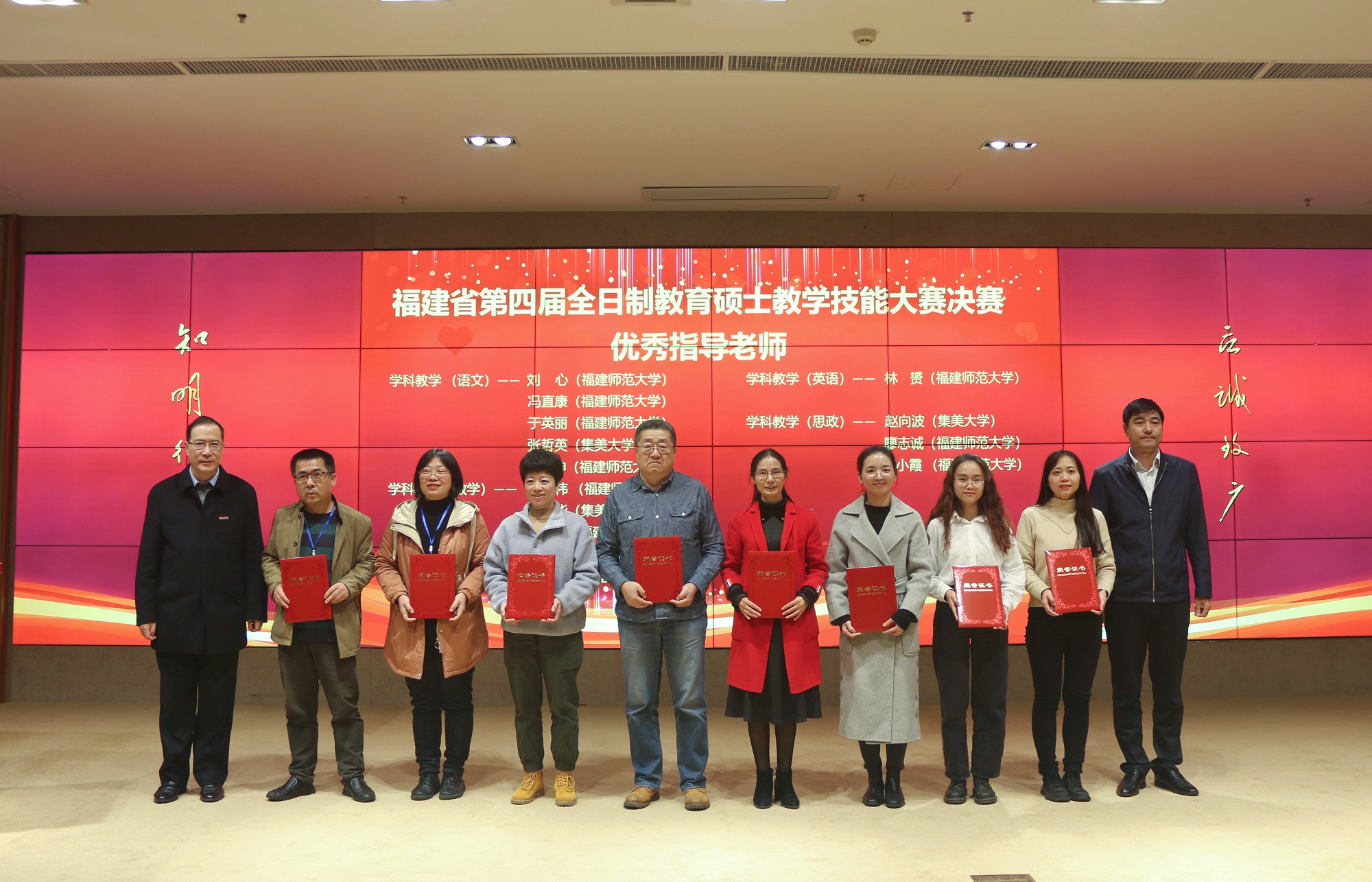 1月8日,由福建省学位委员会办公室主办,我校研究生院和数学与统计学院共同承办的福建省第四届全日制教育硕士教学技能大赛决赛落下帷幕,教育厅高等教育处副处长倪维庆,我校校长王长平,研究生院、数学与统计学院等单位负责人出席大赛闭幕式。据悉,此次大赛共54位研究生入围决赛,最终评出一等奖12名、二等奖15名、三等奖27名。我校24位参赛研究生表现突出,共获一等奖8名、二等奖11名、三等奖5名,殷世东等15位教师获得“优秀指导教师”奖。(研究生院、数学与统计学院)