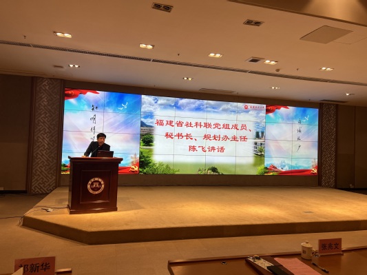 会议于1月17日在旗山校区行政楼宏达厅召开。福建省社科联党组成员、秘书长、社科规划办主任陈飞,社科规划办副主任肖孟刚,厦门大学社会星空体育网站赞助莱切处处长高和荣,我校副校长郑家建,文科学院(学部)分管科研工作负责人、科研秘书,拟申报2022年度国家社科基金项目的教师,社会科学处全体工作人员等参加了会议。