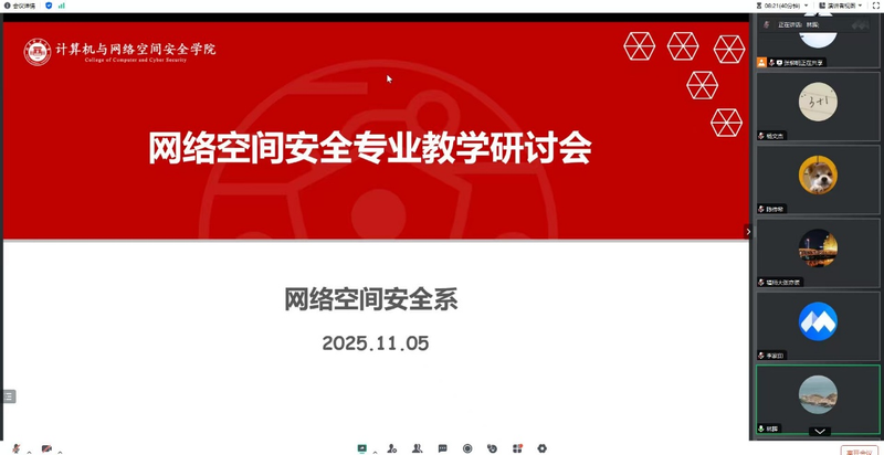 教学研讨会上,与会教师围绕“面向实战创新型网络安全人才培养的专业建设”主题展开讨论。会议反馈了学生提出的意见,并围绕优化课程内容、提升教学能力、加强学科竞赛等方面深入交流,探索实战型人才培养新模式。