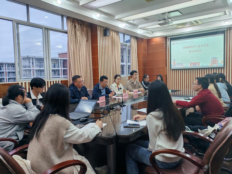 学生座谈会上,教师们围绕AI技术应对、升学就业规划及企业能力要求等方面与学生代表展开交流,建议同学们以AI为工具强化前沿技术的学习,同时表示将根据同学们的实际需求优化课程设置。