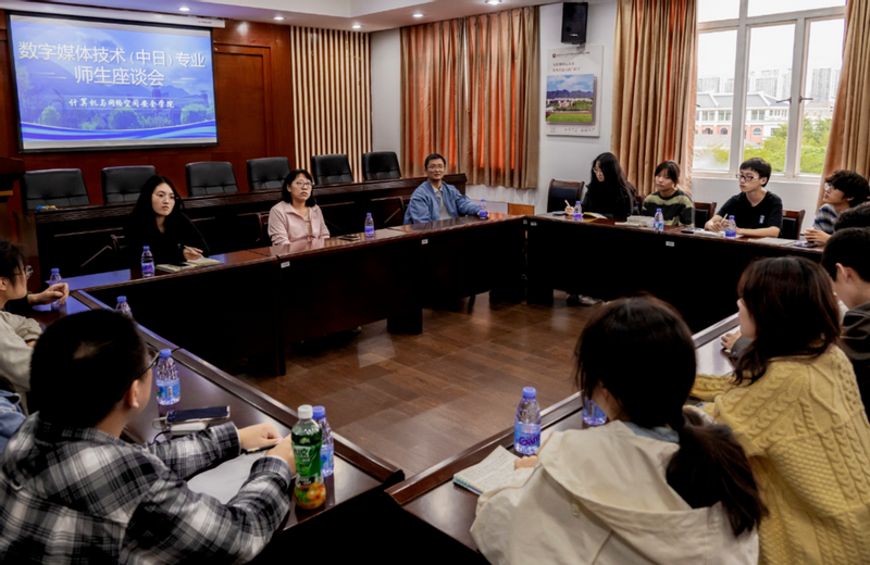 学生座谈会上,师生们围绕课程设置、能力发展、未来规划展开交流。与会教师耐心解答了同学们关于日方课程安排、分流培养方式、考研出国就业等问题,并提出针对性建议。