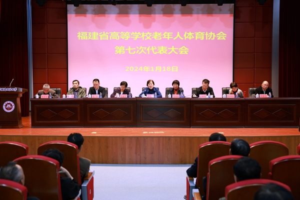 1月18日,省高等学校老年人体育协会第七次会员代表大会在我校仓山校区科学会堂召开。省人大常委会原副主任、省老体协主席王美香,省妇联原副主席、省老体协副主席马义英,省教育厅副厅长陈丽英,第六届省高校老体协主席郑才木,省政协教科卫体委副主任、福建商学院原党委书记刘剑津,我校党委副书记涂荣,福建商学院副校长萧罡,华侨大学原党委副书记朱琦环,福建警察学院二级巡视员林佑达以及各高校老体协主席、秘书长等参加会议。会议由郑才木主持。