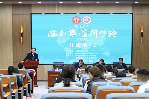 在开班式上,陈式海代表省侨联致辞。他简要介绍了侨乡福建的经济、文化特点和新福建建设情况。他指出,稻谷晒干才能当种子,铁要百炼才能成钢,参训学员要珍惜研习机会,认真学习、互相促进、共同提高、增进友谊,在本次学习中如种子般发芽生长,在未来的人生旅程里,不断磨砺自己,逐渐成长为菲律宾和谐侨社的参天大树。朱柳表示,“侨连五洲·海外联谊研修班”是中国侨联面向海外重要侨团侨领、特别是侨界青年才俊以及华裔新生代而精心打造的主要品牌活动,参训学员要在学习中增长世情、国情和侨情的知识,在思考中升华思想,增进家国情怀,在未来的实践中,弘扬好嘉庚精神,担负起引领海外和谐侨社建设、传承中华优秀文化、沟通中菲两国的使命和职责。陈庆华代表学校向与会领导、嘉宾表示热烈欢迎,并简要介绍了学校发展情况。他表示,在菲律宾华社的支持下,我校与菲律宾建立了深厚的国际教育合作基础。他希望参训学员在本次学习中进一步了解福建、了解福建师大,继续发挥融通中外的独特优势,架设起中菲两国交往桥梁,在增进产业合作、文化交流等方面发挥积极作用。