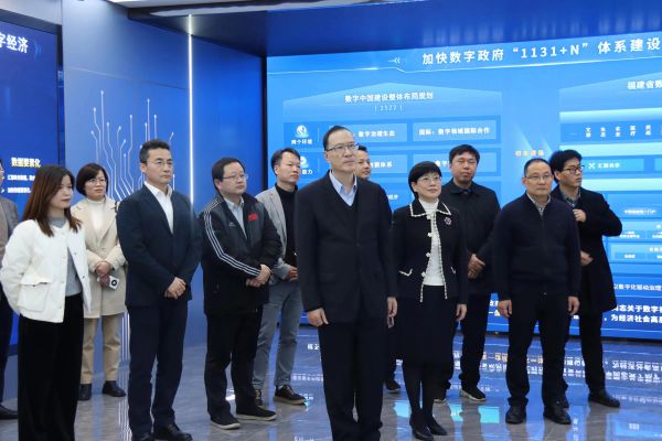 王长平一行参观了大数据产业园、数字政府展示中心,并与福建省大数据集团有关负责人座谈交流。他高度赞赏福建省大数据集团成立以来取得的显著成绩。他指出,福建省大数据集团因数字福建而生,在成立的短短2年多来成为百亿国企,为数字中国贡献了福建经验、福建案例、福建技术、福建产品,我校主动融入数字中国、网络强国建设,在学科布局、人才培养等方面与省大数据集团有诸多契合点。他希望进一步加强与福建省大数据集团在产教融合、科技协同、数字创新等方面的合作,为毕业生在闽就业创业搭建更好平台、创设更好机会、实现更好发展。