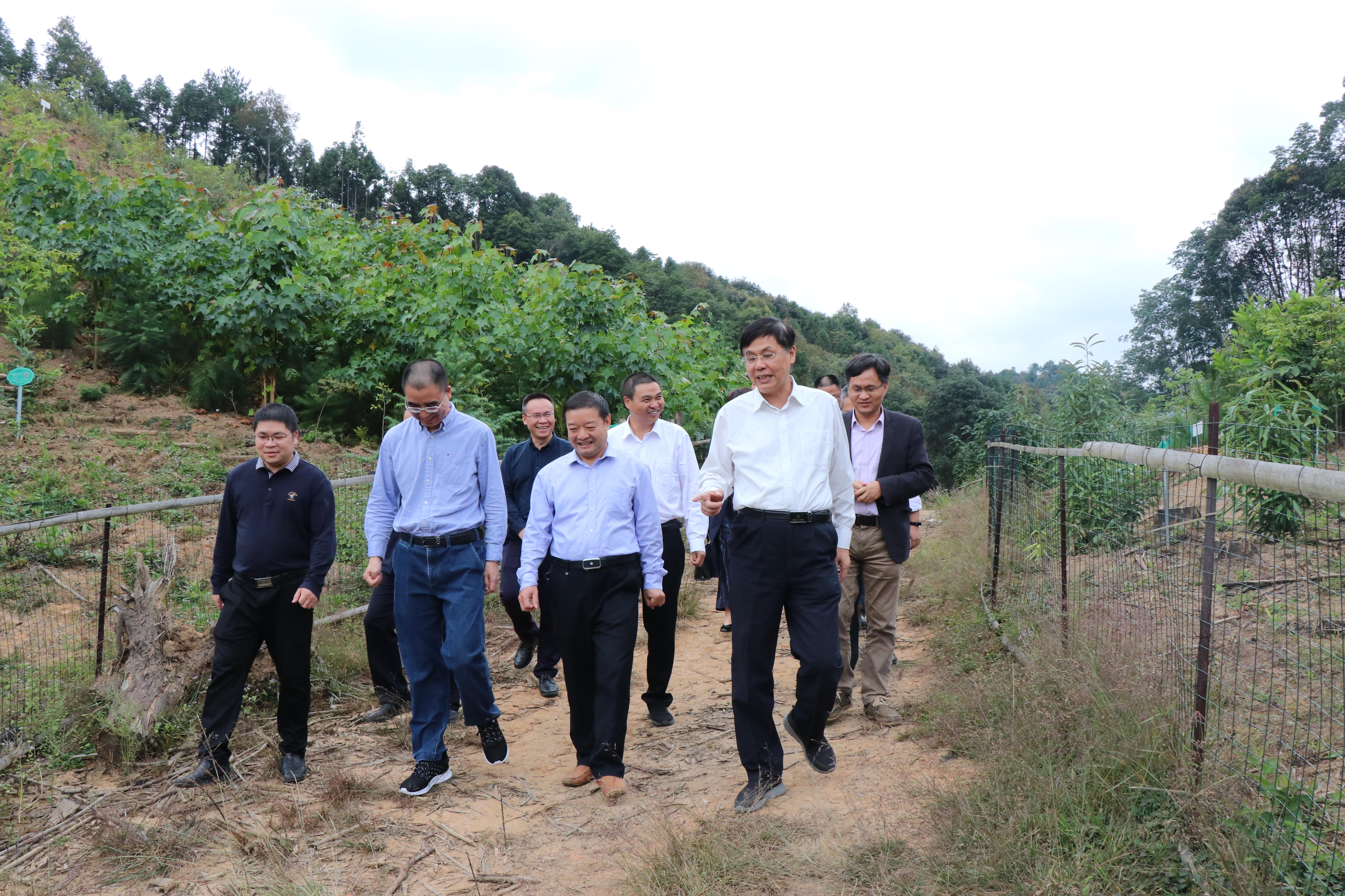 调研组一行深入上杭白砂国有林场,实地调研我校建设的“全球气候变化背景下树种多样性、功能特性与生态系统功能实验平台”样地,龙岩市林业局党组书记、局长张田华和上杭县副县长卢家荣等人陪同调研。李宝银一行听取了实验平台负责人黄志群研究员的工作情况介绍,对一年来样地建设的积极成效和可喜变化予以了充分肯定。随后,调研组一行会同龙岩市林业局在白砂国有林场场部召开座谈会。张田华局长简要介绍了福建龙岩现代林业科技示范园区的建设情况,白砂林场邹秉章场长介绍了白砂林场与学校合作共建情况。李宝银在讲话中表示,龙岩市委、市政府高度重视林业工作,将林场科技示范园区建设作为市委市政府关于持续深化集体林权制度改革三年行动计划(2020-2022年)中的重点项目,这对福建师大实验样地和其他相关科研项目建设都起到了积极的推动作用。近年来,龙岩市林业局和白砂林场在人力、物力、财力等方面,对实验样地建设给予了倾力支持,有力促进了实验样地建设与发展,为把样地打造成为国际一流的林业科研创新平台创造了良好条件。学校将继续带着责任和感情,大力践行习近平生态文明思想,充分发挥学校办学优势,依托闽西红色圣地、绿色宝地,在生态文明教育基地、野外观测研究站、科研创新试验中心等方面加强合作,大力支持龙岩市林业事业高质量发展。