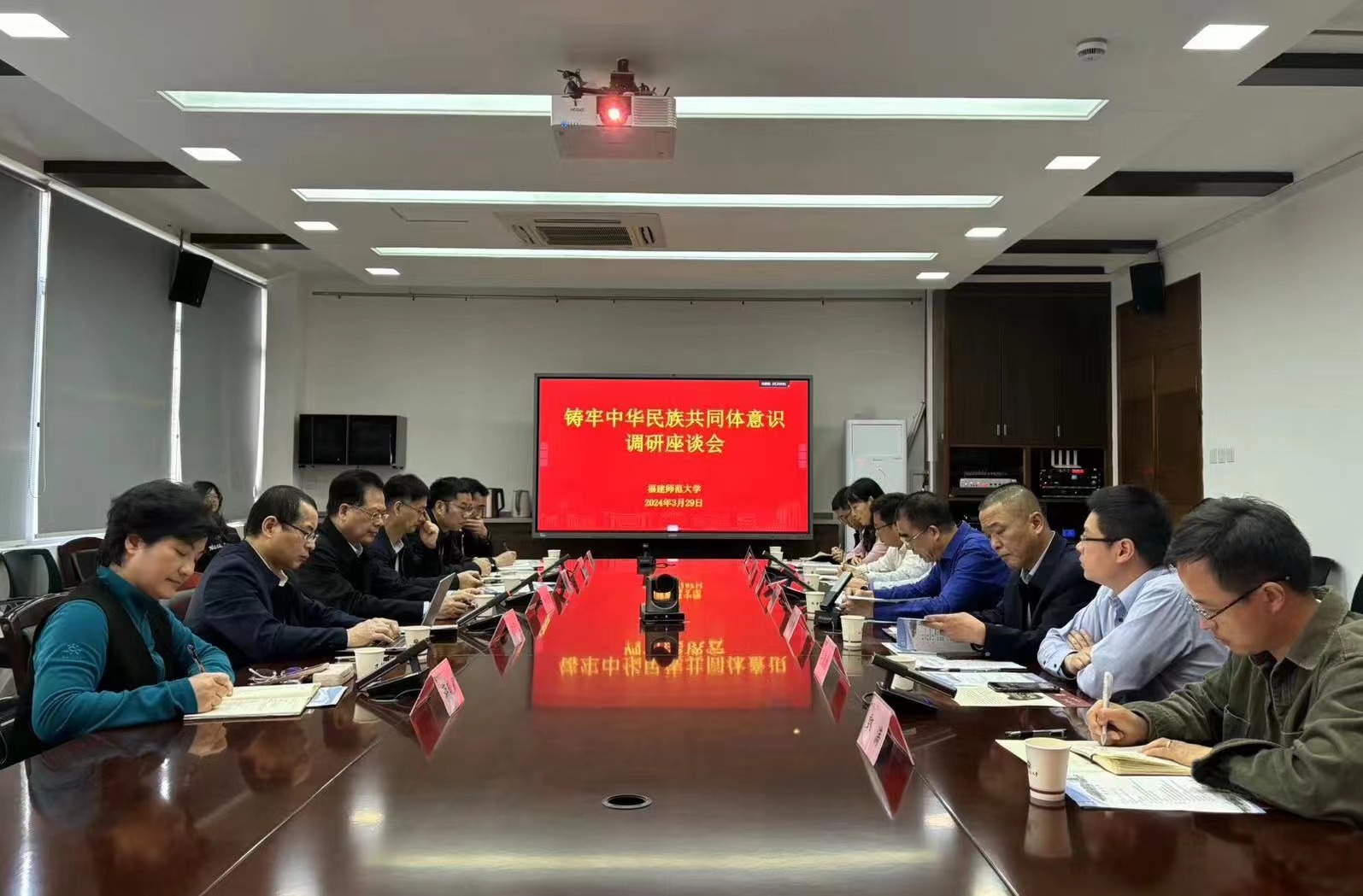 座谈会上,郑家建代表学校对调研组一行表示热烈欢迎,介绍了学校铸牢中华民族共同体意识工作的特色做法和所取得的成效,希望以此次调研为契机,深化合作交流,共同推进铸牢中华民族共同体意识工作,在服务国家战略需求方面发挥更大作用。闽台区域研究中心和社会历史学院先后汇报了国家民委中华民族共同体研究基地闽台区域研究中心、福建省闽台宗教和民间信仰研究中心的建设情况。与会专家学者从多学科角度介绍了铸牢中华民族共同体意识的研究进展,并展开热烈交流。