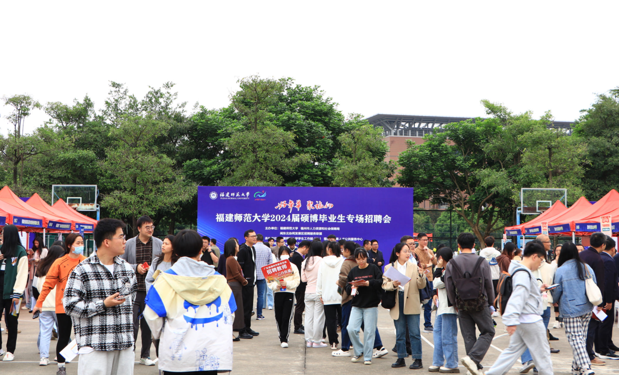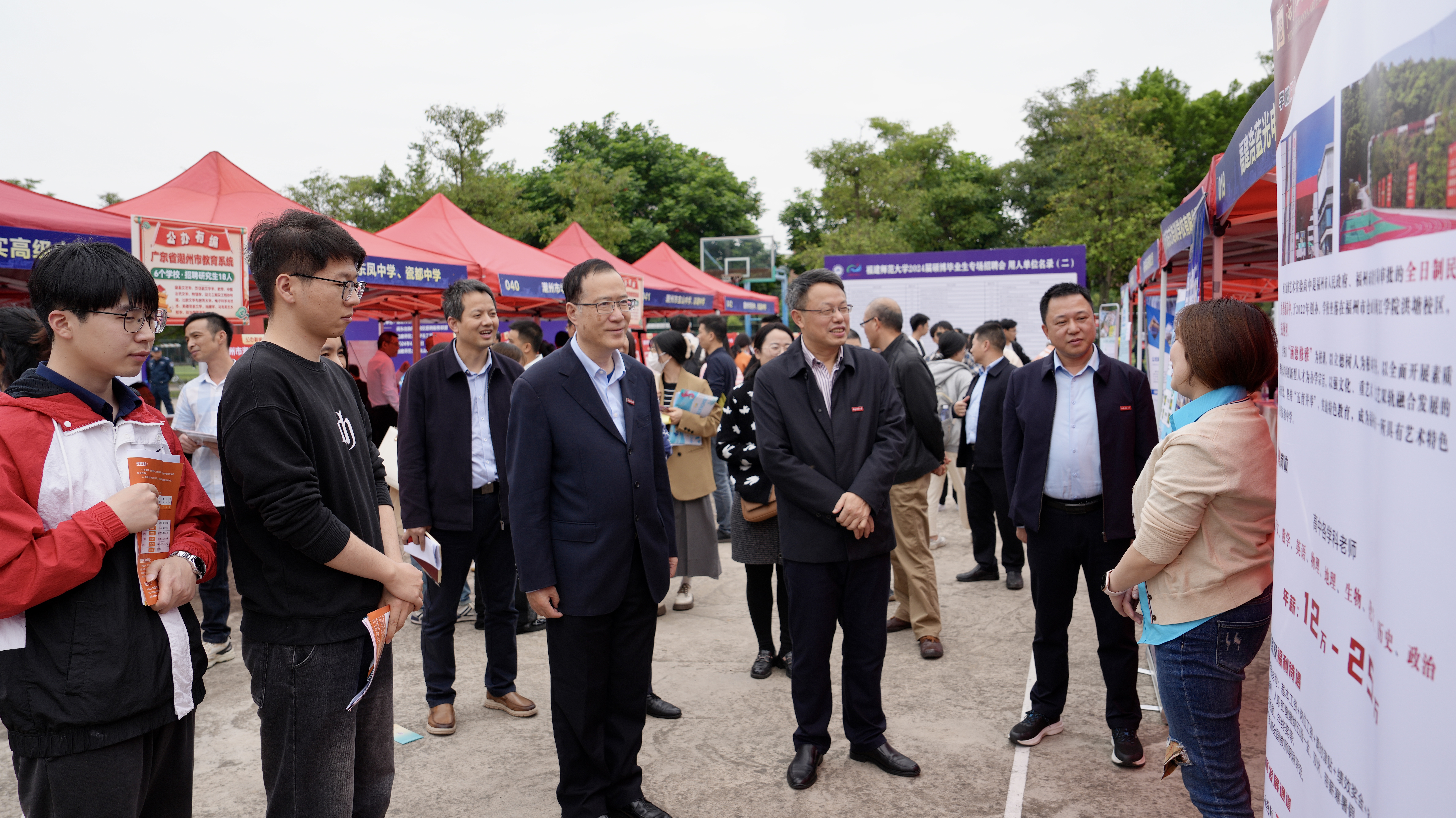 招聘会于4月10日在我校旗山校区东区篮球场举行,由福州市人力资源和社会保障局、闽东北协同发展区招聘服务联盟和我校联合举办。福州市人社局人事人才中心主任洪晓西,校党委书记潘玉腾,校长王长平,校党委副书记涂荣,学生工作部、各学院分管学生工作负责人,毕业班辅导员以及2024届毕业生参会。