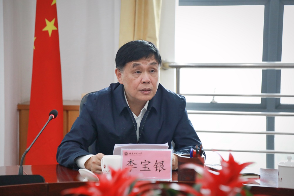 李宝银书记代表校领导班子对省委的决定表示坚决拥护,对陈庆华同志回校工作表示热烈欢迎。他指出,省委对校领导班子的调整充实,充分体现了对我校改革发展的高度重视和亲切关怀。希望陈庆华同志尽快融入班子、融入学校,与其他班子成员一道和谐共事、团结奋斗,奋力推进学校“双一流”建设,不辜负省委的关怀与期望。他还就进一步加强校领导班子建设强调三点意见,一要旗帜鲜明讲政治,带头深入学习贯彻习近平新时代中国特色社会主义思想,自觉用十九届五中全会精神统一思想和行动,在统筹推进常态化疫情防控和学校事业发展中增强“四个意识”,坚定“四个自信”,做到“两个维护”;二要团结协作促合力,认真贯彻落实党委领导下的校长负责制,严格执行民主集中制,切实增强凝聚力和战斗力,把学校领导班子建设成师生信赖、团结和谐、同心同德、坚强有力的集体;三要扎实履职建新功,坚持一张蓝图绘到底,统筹做好第五轮学科评估、新一轮博士点申报、重点攻坚项目、“十四五”规划等各项工作,坚持统揽全局、协调各方,凝聚发展合力,全力推进学校改革发展。