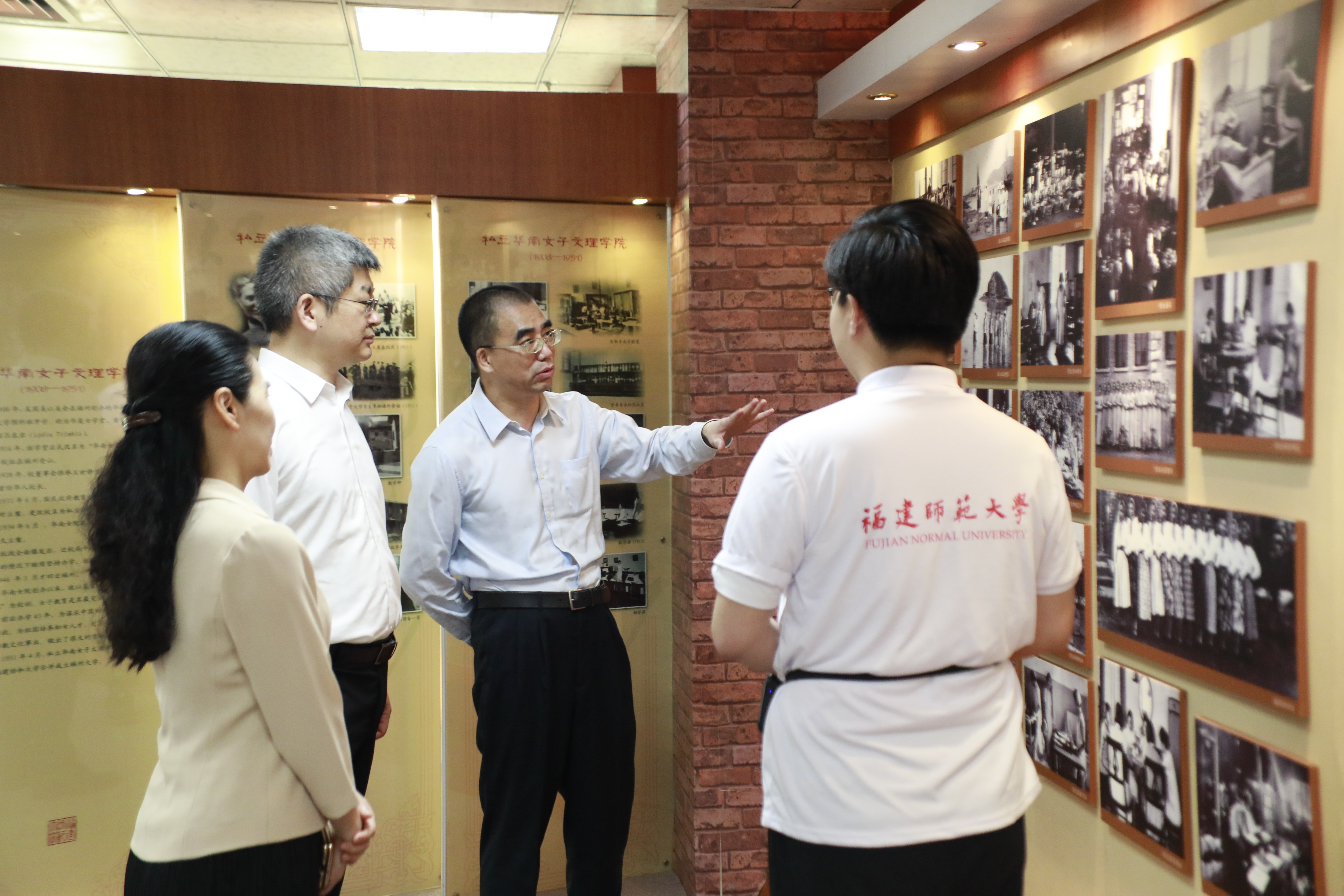 4月15日,教育部教师工作司副司长黄小华一行来校调研指导,校领导陈晓红、郑家建,省教育厅教师工作处处长、一级调研员戴颖,学校相关职能部门负责人陪同调研。黄小华一行实地走访了我校老照片馆和新时代大学生社会大课堂实践中心,听取了我校办学历史和事业发展情况、推进习近平新时代中国特色社会主义思想入脑入心工作情况的汇报,并就深入加强教师思想政治、师德师风建设和教师能力素质提升,以及深化教师教育改革创新进行了交流。 (人事处)