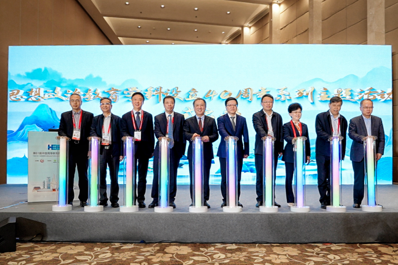 活动于4月15日在福州海峡国际会展中心成功举行,由教育部思想政治工作司指导,中国高等教育学会主办,中国高等教育学会思想政治教育分会、教育部高校思想政治工作创新发展中心(上海交通大学)、我校马克思主义学院、上海交通大学马克思主义学院、《思想教育研究》编辑部联合承办。活动分为思想政治教育学科设立40周年系列主题活动启动仪式和学术交流两个部分。教育部思想政治工作司副司长余先亭,福建省教育厅副厅长李绚,中国高等教育学会副会长、中国高等教育学会思想政治教育分会理事长、上海交通大学党委书记杨振斌,我校党委书记潘玉腾出席活动并致辞。中共安阳市委常委、宣传部部长薛崇林,两弹一星精神宣讲团成员王定放,重庆红岩革命历史文化中心党委副书记、主任、重庆红岩精神研究会会长雷莹,白求恩精神研究会副会长穆广态,中国教育报刊社副社长、《中国高等教育》总编辑余慧娟,西南大学原党委书记、马克思主义理论研究中心主任黄蓉生,东北师范大学原党委书记、思想政治教育研究中心主任杨晓慧,武汉大学原党委副书记、思想政治教育研究院院长骆郁廷,北京科技大学党委常委、副校长、《思想教育研究》常务副主编彭庆红,北京师范大学马克思主义学院教授王树荫,复旦大学高等教育研究所所长、马克思主义学院教授高国希出席,思想政治教育分会各理事单位校领导以及来自全国130余所高校的师生代表共350余人参加活动。