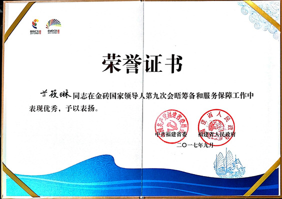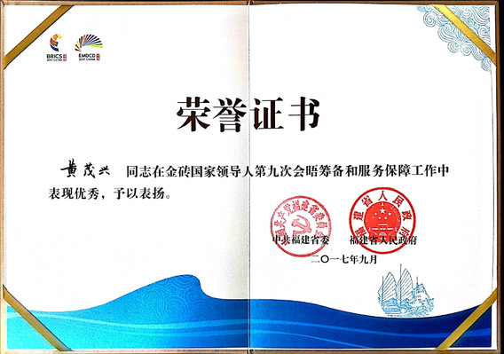 The Centers servingthe BRICS Xiamen Summit was honored by the CPC Fujian Provincial Committeeand Fujian Provincial Peoples Government, which was a recognition for the Centers ability to serve local economic and social development, a full display of the Centers research ability and service ability and will help push the Center towards becoming a national high-level think tank.