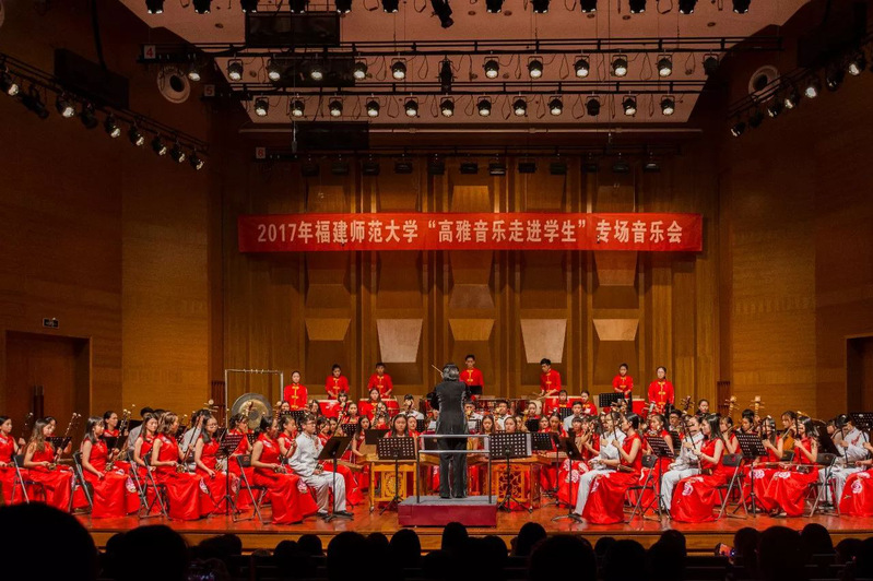Founded in 1985, the traditional orchestra from College of Music, FNU has put on lots of performances both at home and abroad, and cultivated lots of excellent conductors and players of Chinese musical instruments. It has won several times the first prize of the professional group in National College Students Art Exhibition, the first prize of instrumental groups in Fujian Music & Dance Festival and the first prize of instrumental groups in Fujian College Students Art Festival. Moreover, the orchestra has constantly participated in large-scale concerts staged by Fujian Province. It is popular among teenagers and audiences with different levels of appreciation for their passionate and bright performance.