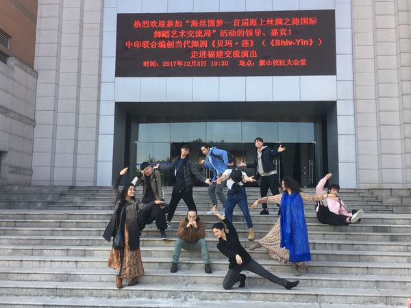 Sponsored by China Dancers Association and co-produced by Chinese Literature and Art Fund, ShriRam Centre for Performing Arts, Serendipity Arts Trust and SRF, the contemporary dance drama Shiv-Yinwas performed in FNU on the evening of Dec. 3rd. It captivated an audience of 1000. Honored guests invited to enjoy the performance with our teachers and students included Feng Shuangbai, Chairman of China Dancers Association & Deputy Director General and Secretary General of Chinese Literature and Art Fund, Luo Bin, SEC of CCP group, Vice-chairman and Secretary General ofChina Dancers Association, Xia Xiaohu, member of CCP group, Vice Secretary General of China Dancers Association, Zhang Ping, Executive Deputy Editor-in-Chief of Dance & Vice Director of Chinese Arts Federation Dance Center, Chen Peizhao, Deputy Secretary General of Fujian Political Consultative Conference, Shi Zhenhua, Chairman of Fujian Dancers Association & Dean of the Fuzhou Opera House, and Miu Lirong, Vice Chairman and Secretary General of Fujian Dancers Association, as well as experts attendingInternational symposium on development and cooperationofdances in the Maritime Silk Road and Vice-president of FNU, Tu Rong.