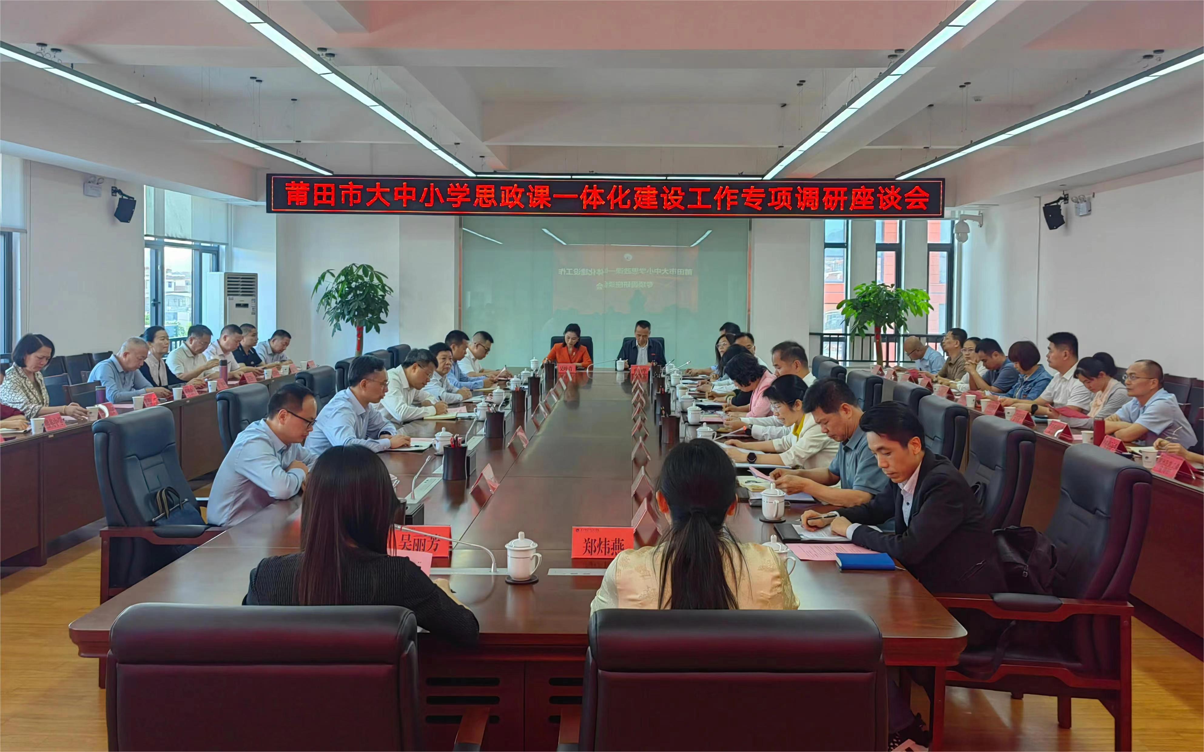 为深入贯彻习近平对学校思政课建设作出的重要指示精神,5月16日,福建省大中小学思政课一体化建设指导委员会专家指导组组长、校党委书记潘玉腾,人民日报社福建分社社长蒋升阳一行前往莆田开展大中小学思政课一体化建设工作专项调研。莆田市市委书记付朝阳会见了调研组一行,莆田市委常委、宣传部部长陈惠黔,莆田市委教育工委书记、市教育局党组书记、局长彭鲤芳,莆田市委教育工委副书记、市教育局党组成员、副局长曾国顺,湄洲湾职业技术学院党委书记柯金国、院长许冬红、党委副书记林新钊等陪同调研。