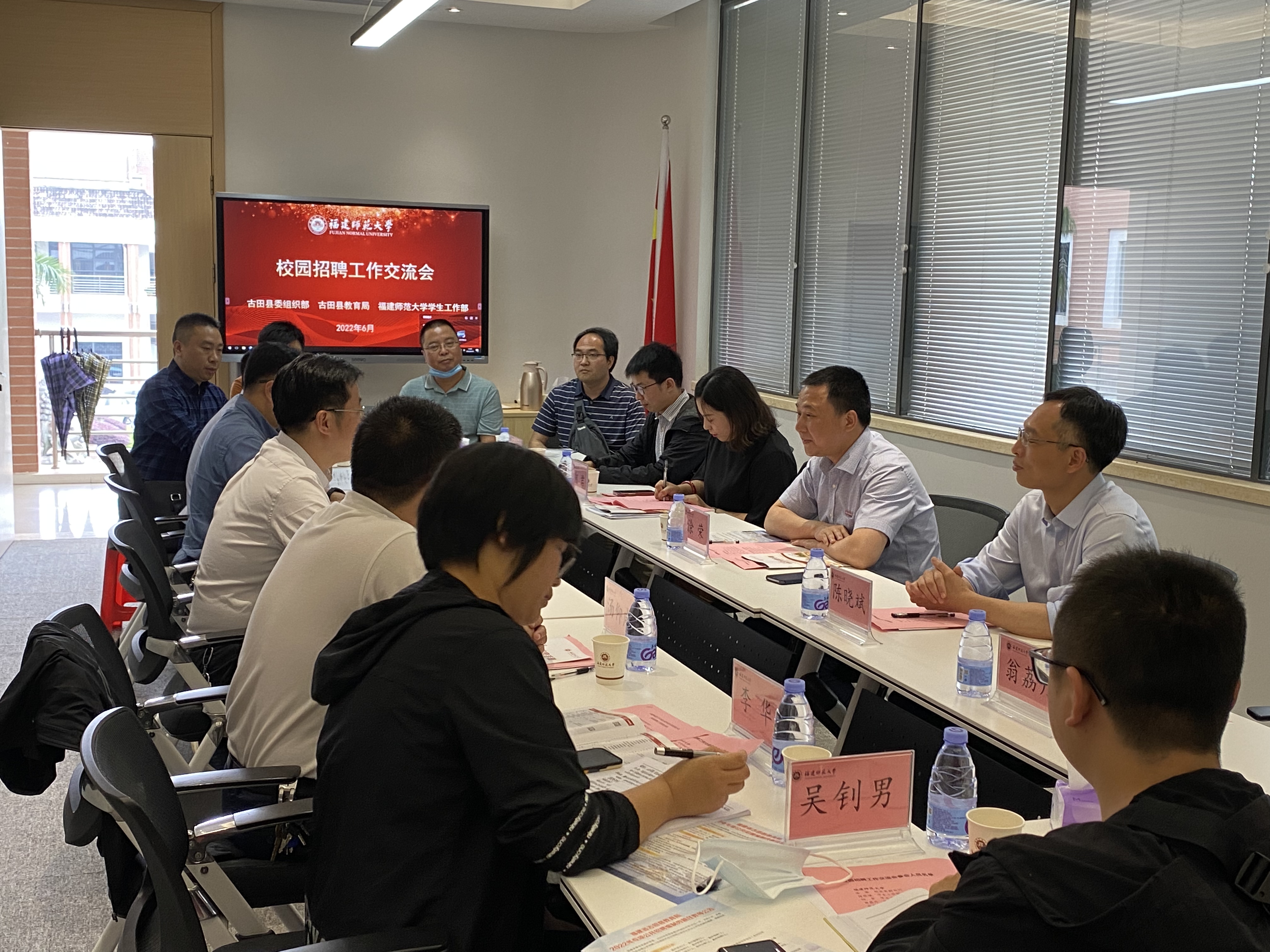 会后,涂荣、学生工作部负责人与古田县委常委、组织部部长张明生,古田县教育局和部分学校负责人座谈交流。涂荣对古田县委组织部、教育局一行表示欢迎和感谢,希望与古田县在人才培养、就业招聘、产教融合、社会实践等方面深化交流合作。张明生表示将进一步加强与我校在引才育才方面的交流协作,实现校地双方合作共赢。