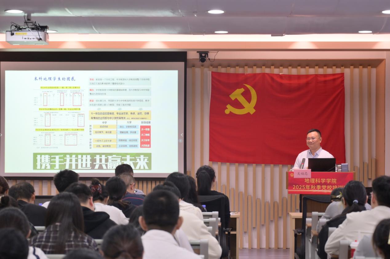 11月7日下午,我院党委于16号科研实验楼608报告厅举办2025年秋季党校培训班开班仪式。院党委书记林翠容、院长吴福忠教授、党委副书记林伟、党委组织员詹红燕、团委书记邹秀琦、各年级辅导员及本期党训班全体学员参加本次开班仪式。本次活动由院党委副书记林伟主持。