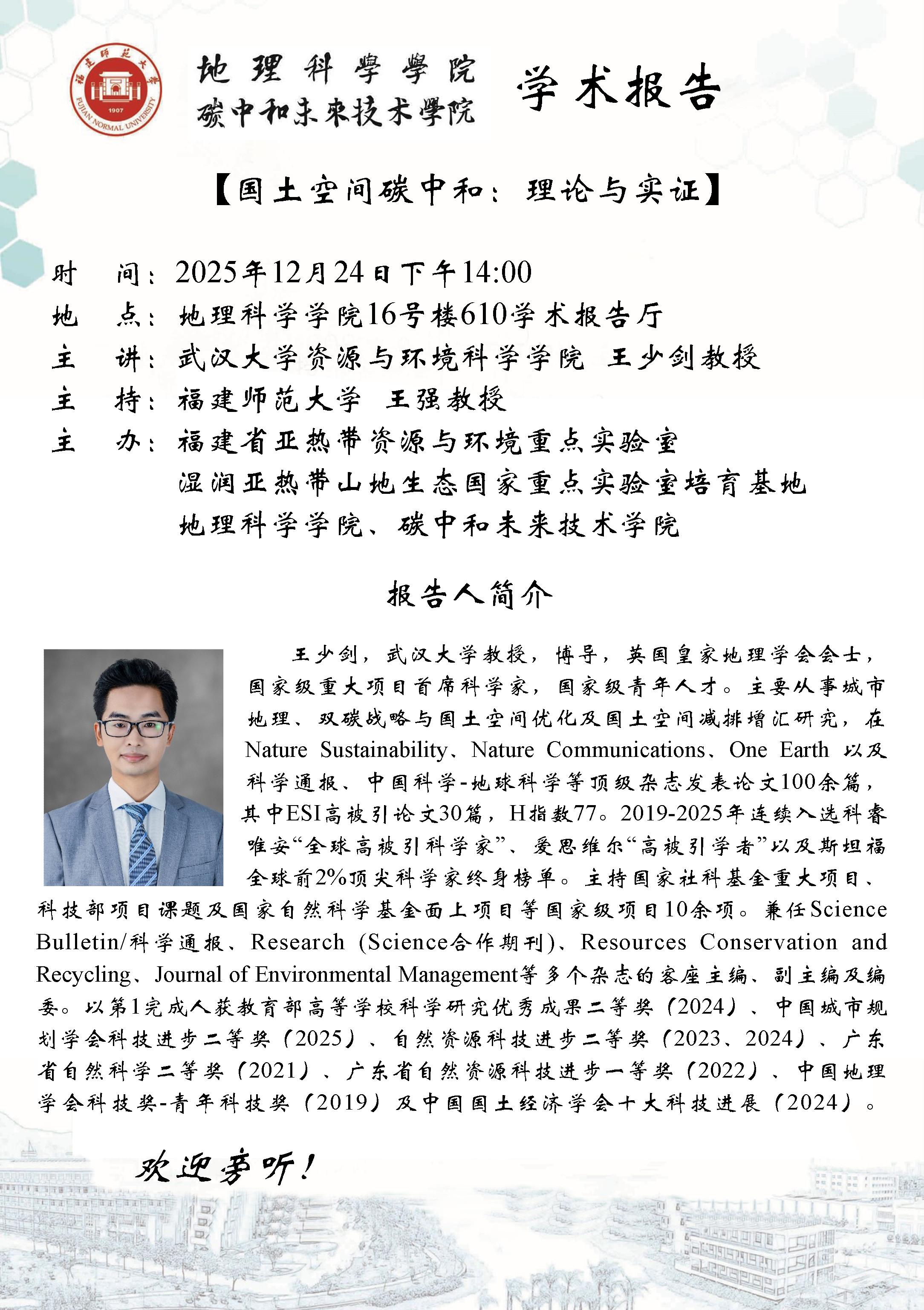 【2025年12月24日下午14:00】“国土空间碳中和:理论与实证”学术报告