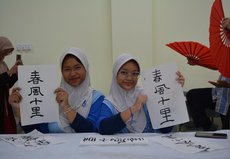 2025年4月10日,为深化本土青少年对中华优秀传统文化的认知,促进中学与高校的教育联动,由阿拉扎大学孔子学院主办、阿拉扎中学承办的“走进中学”汉语文化交流活动在雅加达阿拉扎中学隆重举行。阿拉扎大学副理事长穆尼先生、阿拉扎中学校长、中文系师生代表及阿拉扎中学全体师生共同参与了此次活动。