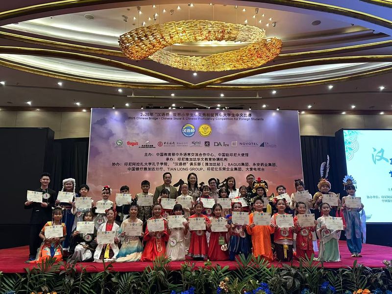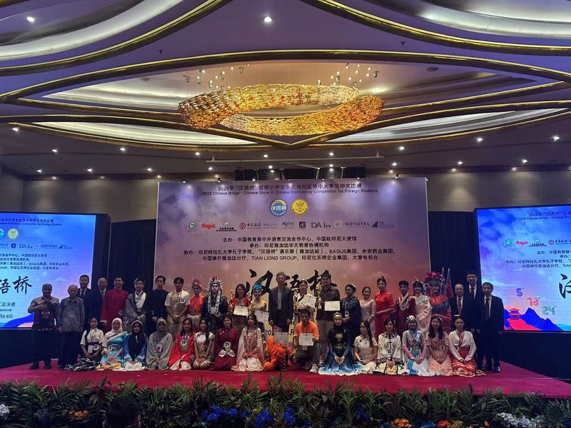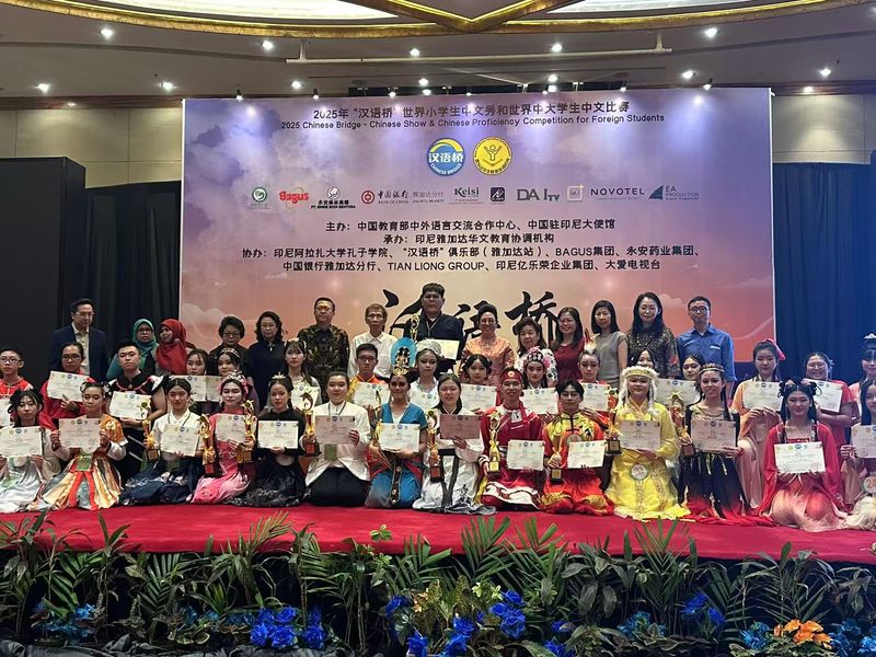 2025年“汉语桥”世界小学生中文秀和世界中大学生中文比赛印尼赛区总决赛于2025年6月6日在印度尼西亚雅加达隆重举办,经过三日的激烈角逐,于6月8号圆满落下帷幕。来自印尼全国多个省份的百余名中文学习者汇聚一堂,展示中文风采,以中文为媒介,讲述梦想、共叙中印尼友谊。