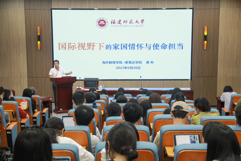 6月28日上午,海外教育学院党委书记黄彬于索莱达105教室开展了《国际视野下的家国情怀与使命担当》专题讲座。