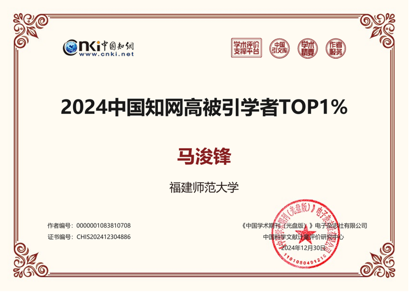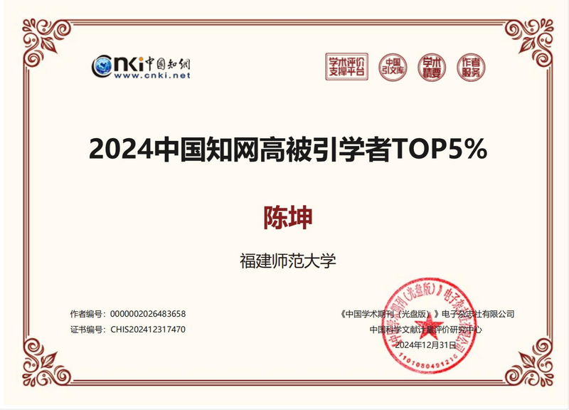 近日,中国知网中国科学文献计量评价研究中心(简称“知网评价中心”)基于中国知网收录的国内学术期刊论文和会议论文,2024年首次开展学者学术影响力客观评价,遴选了“2024中国知网高被引学者”名单,我院共有4位教师上榜,具体名单如下: