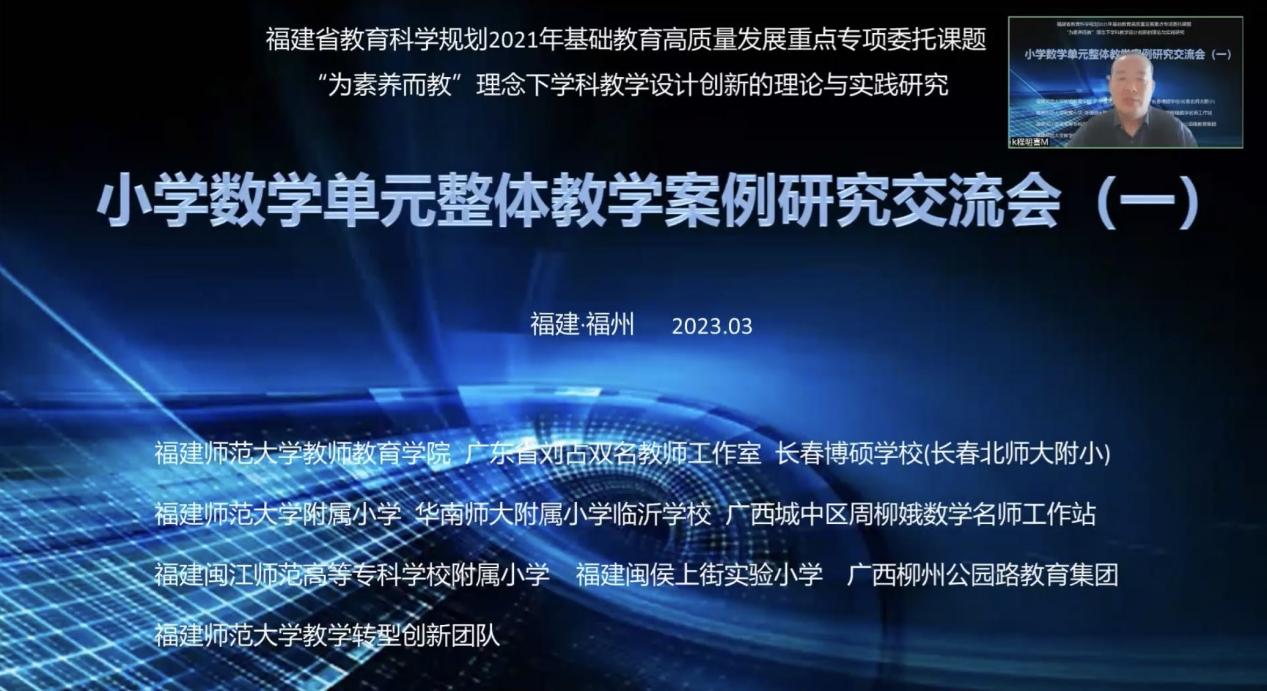 为了探索基础教育高质量发展的有效途径,发挥高校与基层学校协同攻关优势,以课题研究深化基础教育课堂变革,扎实推进新一轮课程改革,2023年3月9日,在星空下载游戏推荐安卓教师教育学院程明喜教授组织下,“为素养而教”理念下学科教学设计创新的理论与实践研究课题组召开了第一次研究交流会。来自广东、广西、山东、吉林、福建等地的研究团队以“小学数学单元整体教学”为主题开展了线上交流研讨。
