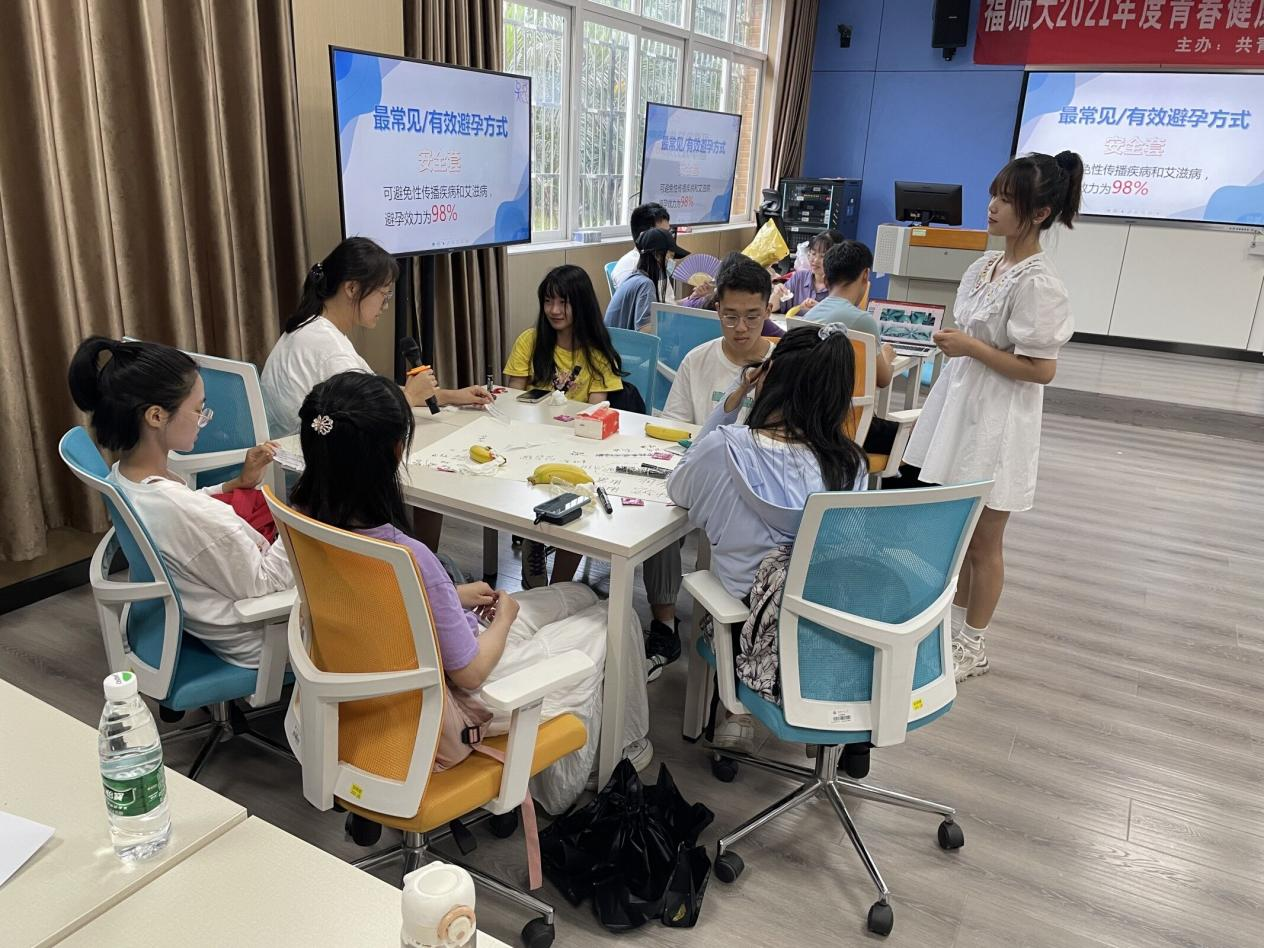 所有参赛者在讲台上自信地表达,小组成员配合默契,与台下的小伙伴们互动良好,充分展现了同伴教育主持人的魅力,也为即将在全校一年级新生中开展的青春健康同伴教育做好同伴教育主持人的储备。
