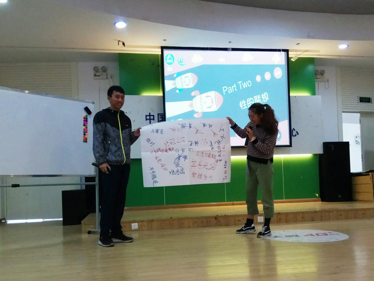 本期培训内容丰富,形式呈现活泼,从介绍什么是同伴教育开始,通过角色扮演真实场景再现,以及营销避孕方法广告营销等互动和游戏,给学员带来了“性息传递”的示范课,帮助大家了解意外怀孕和安全套的使用,进行性病/艾滋病的预防学习,以及主持人的主持技巧培训等,同学们积极参与游戏和活动,为成长为一名合格的青春健康同伴主持人做了必要准备,希望同学们能够把关于“性与健康”的知识传递给身边更多的青年人。