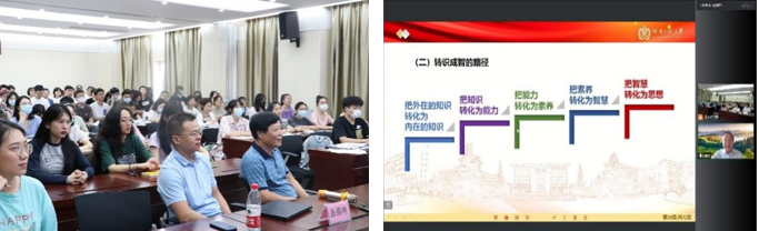 赵国祥教授从“转识成智”的提出背景、知识与智慧的概念、特征进行一一解读,同时运用中国智慧、文化心理学、实践案例等对“转识成智”的核心要素、实现路径进行细致地分析。他鼓励大家要学会把外在知识转化为内在知识、把知识转化为能力、把能力转化为素养、把素养转化为智慧、把智慧转化为思想,化被动为主动,学会资源转化,促进个体成长。