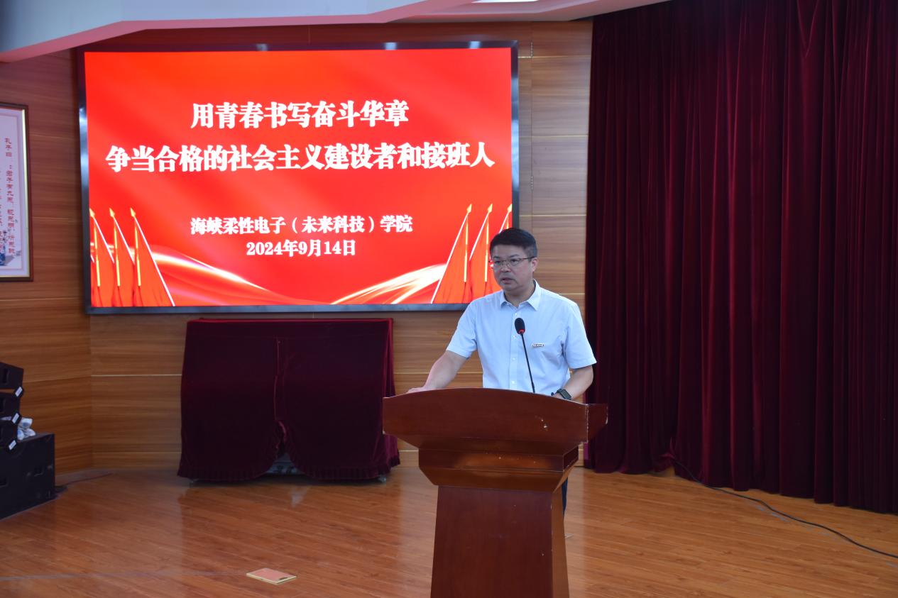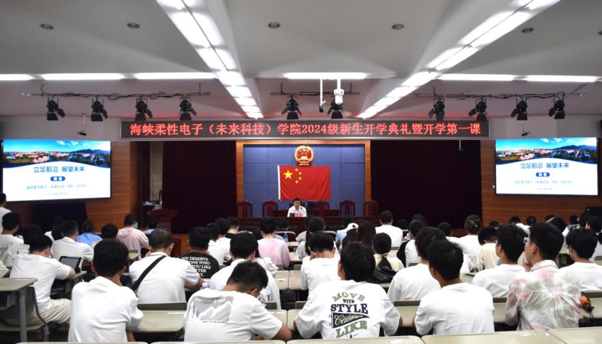 博士生导师、副院长杨震教授以《立足前沿,展望未来》为题,为新生讲授开学第一课。他详细介绍了学院和柔性电子学科的发展沿革、研究内容、未来前景,以及学院人才培养体系,激励同学们志存高远、脚踏实地,勇于探索,踔厉奋发。最后,院党委副书记吴志锋为新生讲授思政第一课。