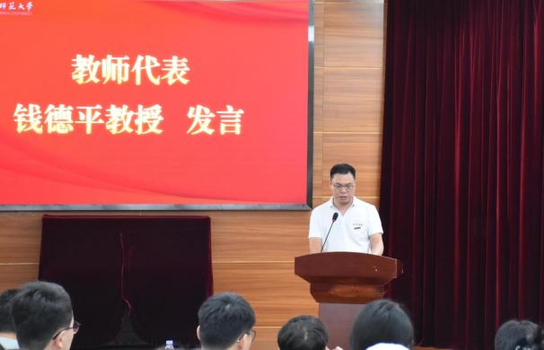 教师代表钱德平教授结合个人科研经历,勉励同学们在守正创新、合作共赢中提升自己的专业素养和综合能力。随后新生代表庄惠岚同学发言。