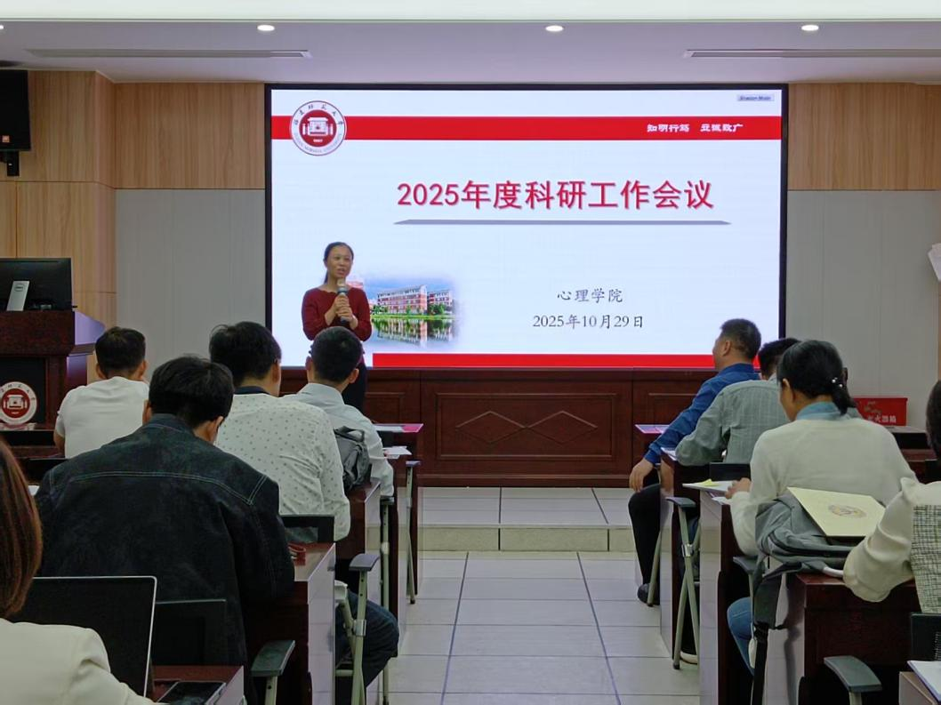 10月29日下午,我院在旗山校区人文楼1-102召开2025年度科研工作会议,社科处七级职员黄金花老师莅临指导。会议由院党委书记张本钰主持,学院全体教师参与。