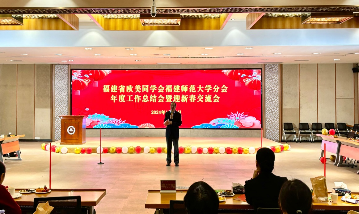 会议于1月19日在旗山楼区宏达厅召开。省欧美同学会副会长、校长、校留学生同学会会长王长平,校党委副书记陈晓红、副校长陈庆华,统战部相关负责人及校留学生同学会100余名会员参会。