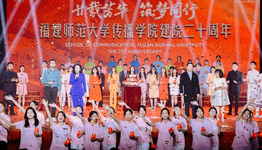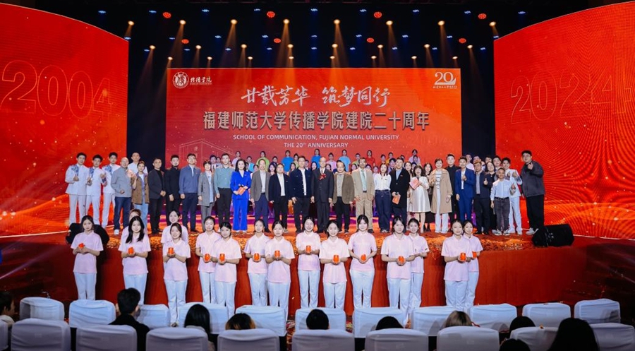 庆祝大会后,庆祝建院20周年文艺演出拉开序幕。会场大屏播放20周年宣传片《廿念不忘》,回顾传播学院二十周年发展历程与办学成果。学院教师与校友代表作为讲述人,温情回忆在传播学院的点滴故事,并与在校生带来精彩表演,以歌舞、朗诵等形式展现学院二十年的卓越风采与育人成就。