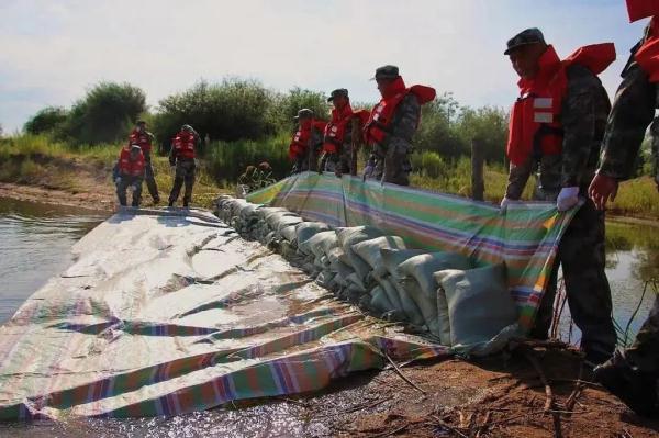 “一个一个往后传!”官兵们争分夺秒装好沙袋 ,按照突击队的统一部署,在保证安全的前提下奋力挥动铁锹、搬运沙袋,在低洼区域迅速垒筑堤坝,及时消除险情。