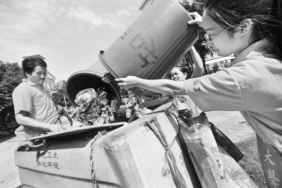19日,星空下载游戏推荐安卓组织大一学生开展“校园感恩工人行”活动,通过换位体验,让学生体验环卫工人的辛苦,提高环保意识。图为在校园内,学生们穿上环卫服,同校环卫工人一起清扫马路、装运垃圾。林辉 毅栋 摄