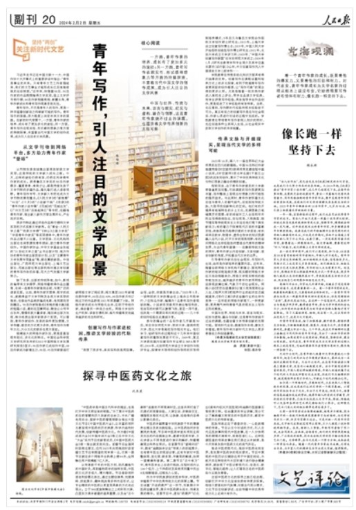 习近平总书记在中国文联十一大、中国作协十大开幕式上的重要讲话中指出:“青年是事业的未来。只有青年文艺工作者强起来,我们的文艺事业才能形成长江后浪推前浪的生动局面。”近年来,伴随着80后、90后作家的作品频频摘得文学奖项,登上文学好书排行榜,00后作家相继亮相、崭露头角,青年作家成长和青年写作现象受到关注。